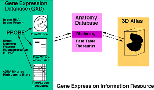 The Mouse Gene Expression Information Resource (MGEIR) is being developed collaboratively by the Gene Expression Database (GXD) project and the Edinburgh Mouse Atlas project. Ultimately, the MGEIR will provide the scientific community with a unified resource that combines text-based and 3D graphical methods to store, display, and analyze mouse developmental gene expression information.