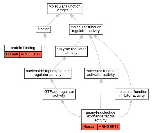 | Molecular Function | GO:0005085 | guanyl-nucleotide exchange factor activity | ARHGEF17 | IDA | Human | PMID:12071859 | |