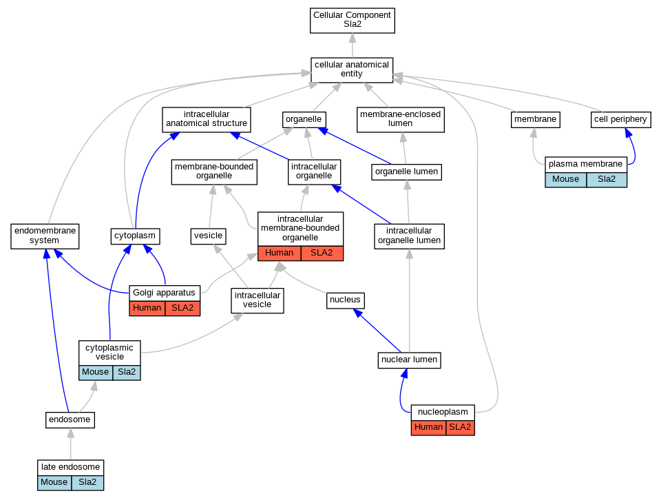 | Cellular Component | GO:0043231 | intracellular membrane-bounded organelle | SLA2 | IDA | Human | GO_REF:0000052 | |