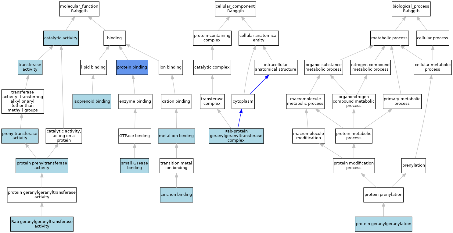 | Cellular Component | GO:0005968 | Rab-protein geranylgeranyltransferase complex | ISO | J:155856 | |||||||||