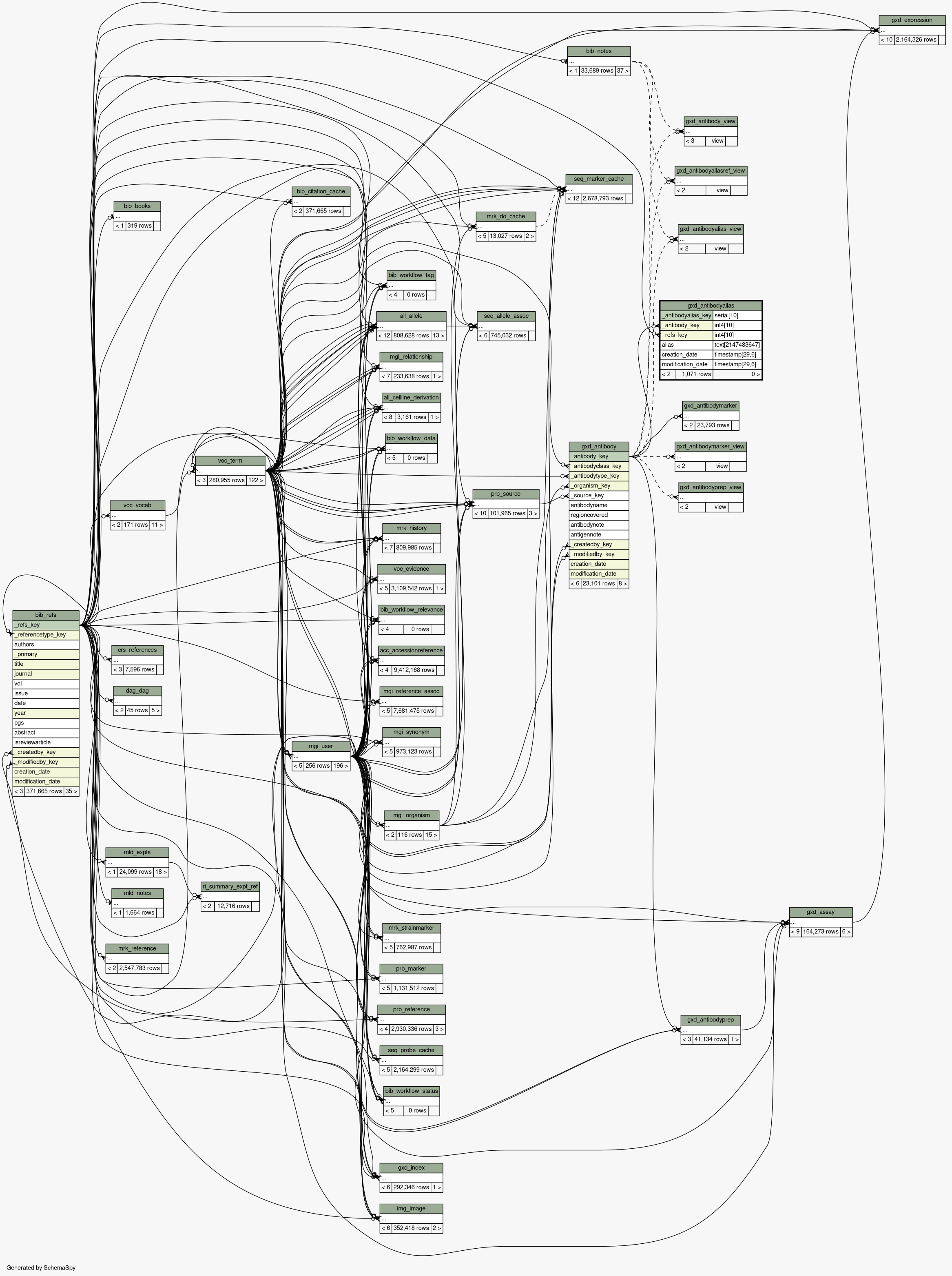 | Table pub.mgd.gxd_antibodyalias Antibody synonyms. See GXD_Antibody.