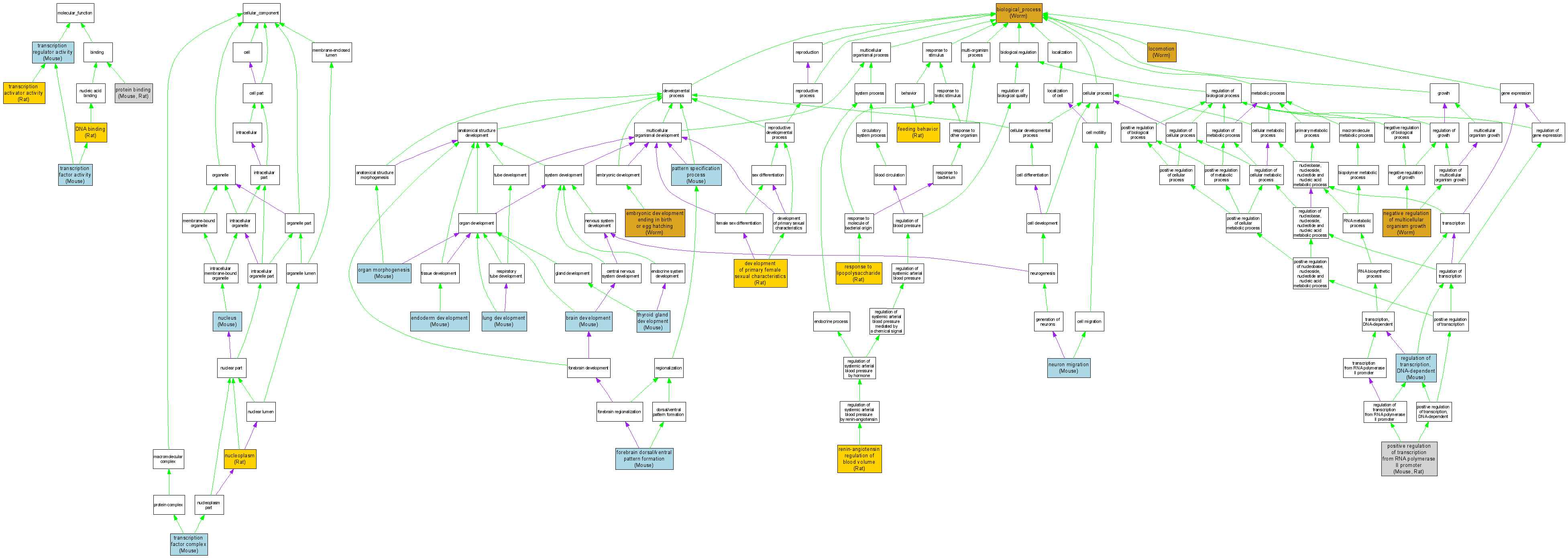 Compare GO annotations related to Chorea, hereditary benign using OMIM genes and OrthoDisease orthologs