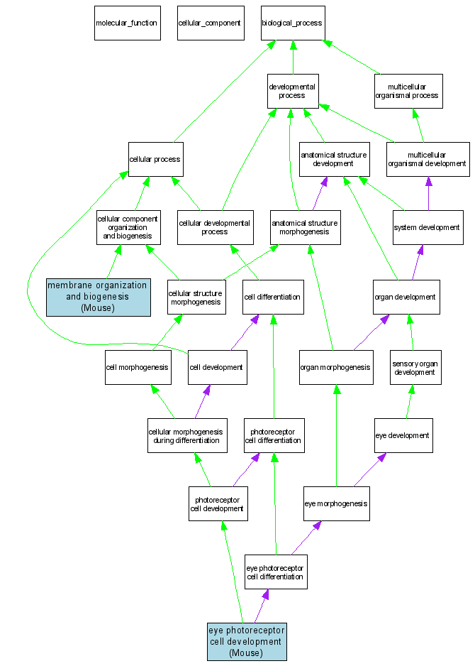 Compare GO annotations related to Pigmented paravenous chorioretinal atrophy using OMIM genes and OrthoDisease orthologs