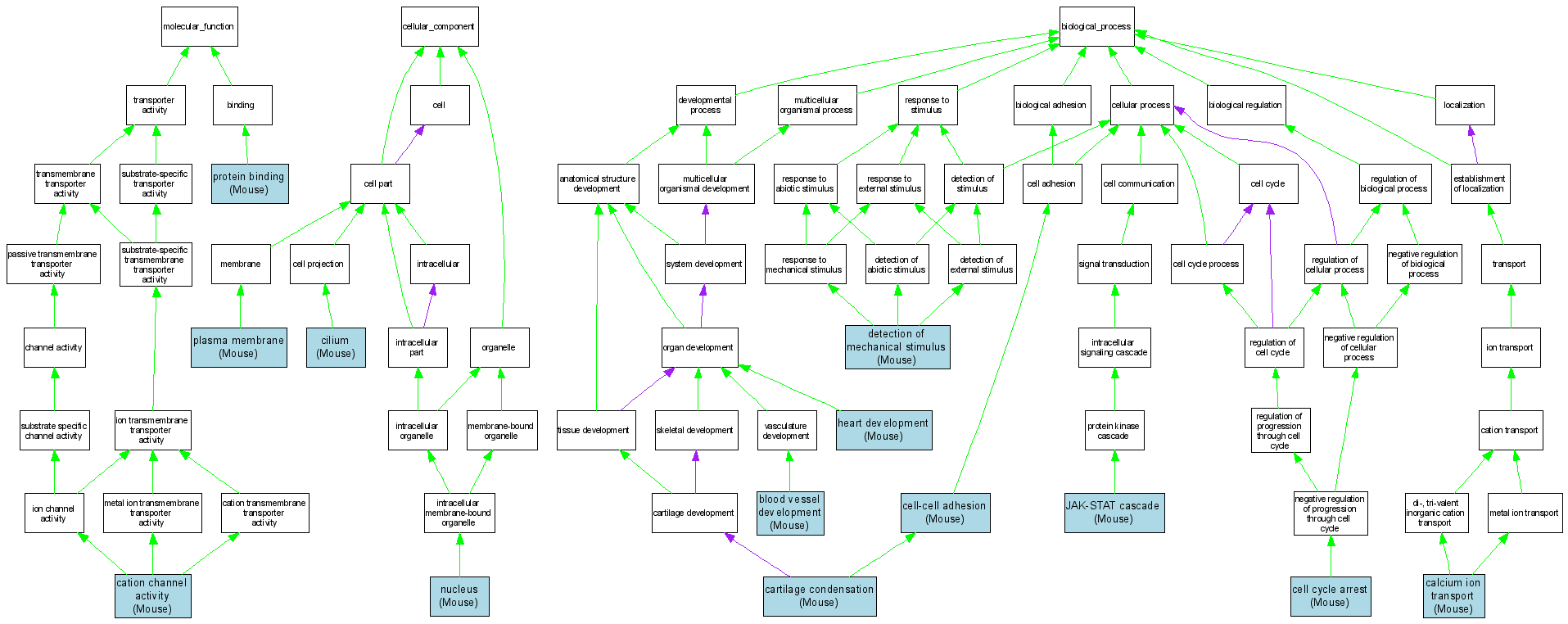 Cellular ComponentGO:0005929cilium MGI:97603IDAMouseMGI:MGI:2449360|PMID:12514735