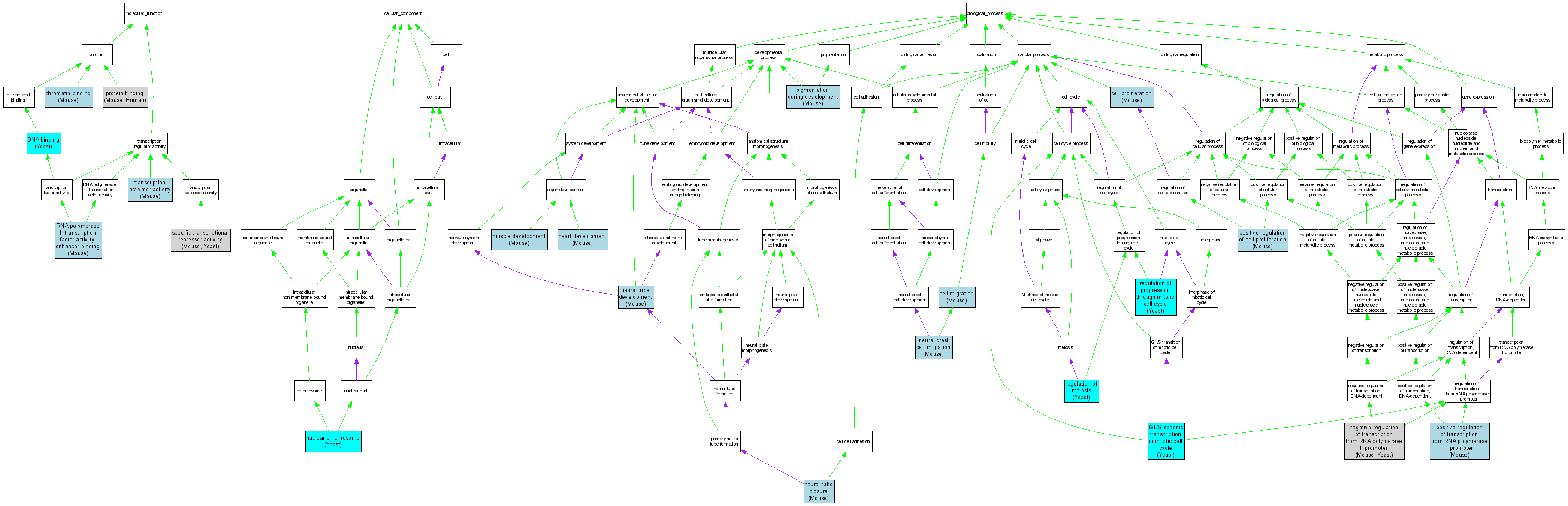 Compare GO annotations related to Waardenburg syndrome, type I using OMIM genes and OrthoDisease orthologs