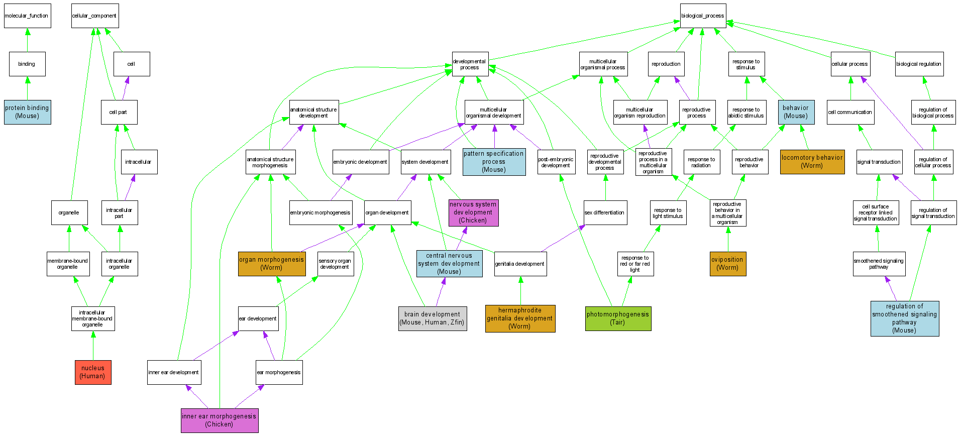 Compare GO annotations related to Dandy-Walker malformation using OMIM genes and OrthoDisease orthologs