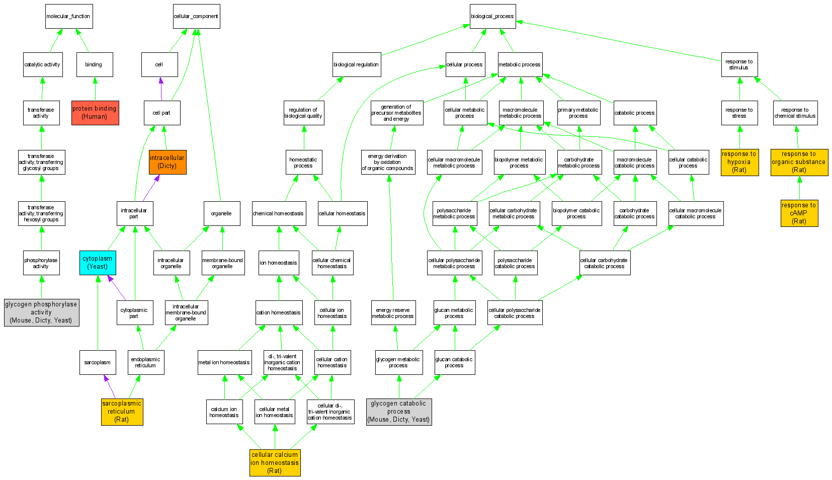 Compare GO annotations related to McArdle disease using OMIM genes and OrthoDisease orthologs