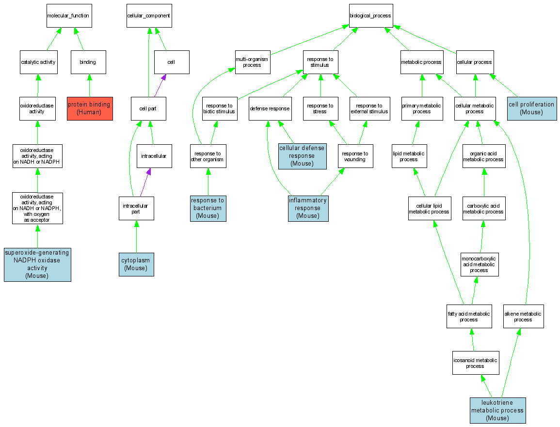 Biological ProcessGO:0006691leukotriene metabolic process MGI:97283IMPMouseMGI:MGI:2176389|PMID:11867678