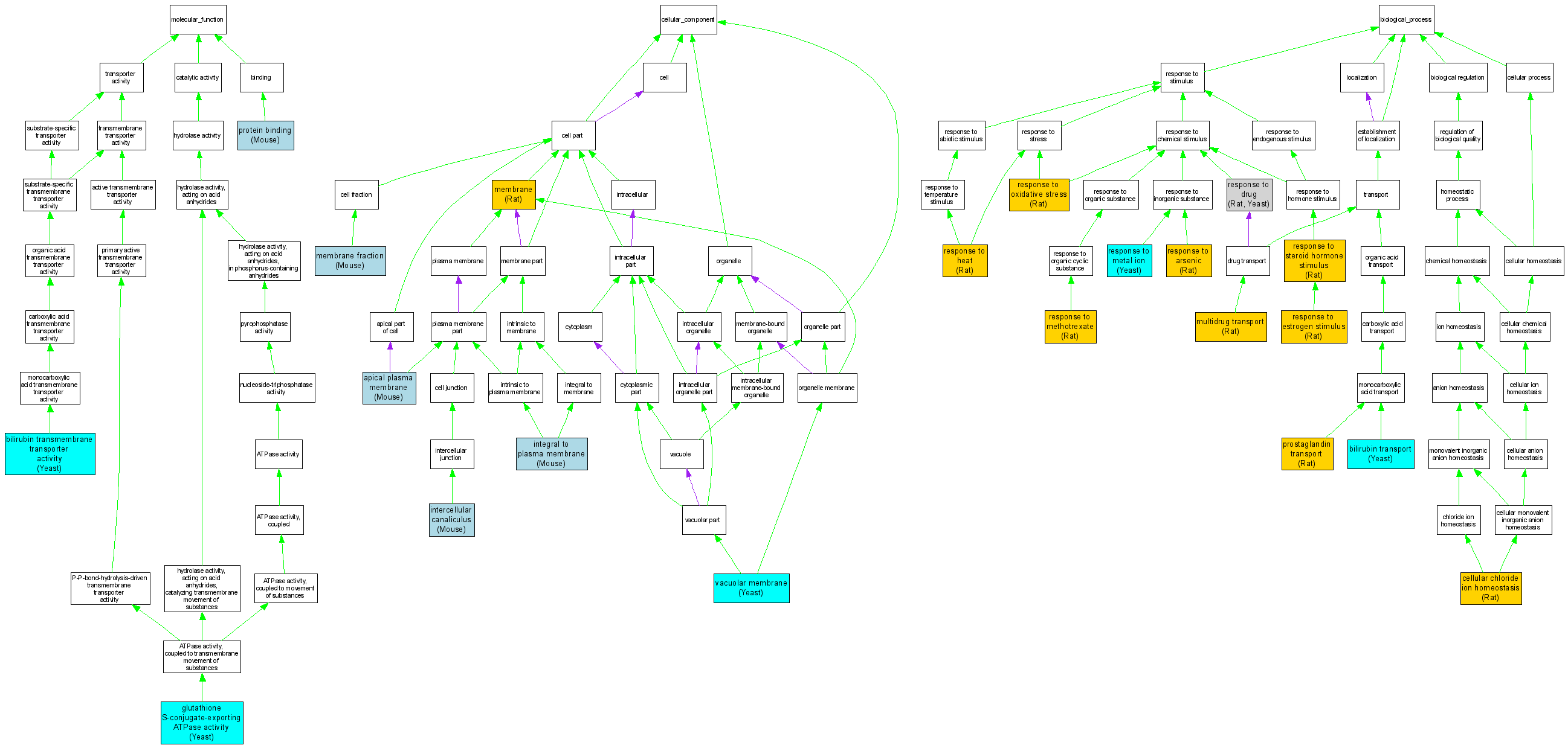 Compare GO annotations related to Dubin-Johnson syndrome using OMIM genes and OrthoDisease orthologs