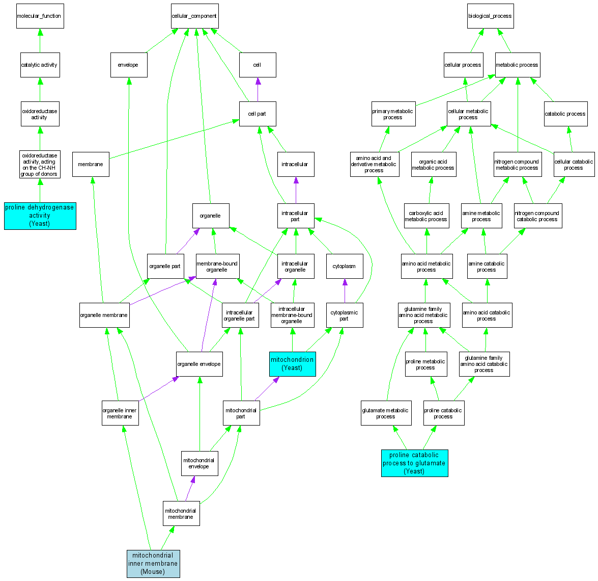 Compare GO annotations related to Hyperprolinemia, type I using OMIM genes and OrthoDisease orthologs