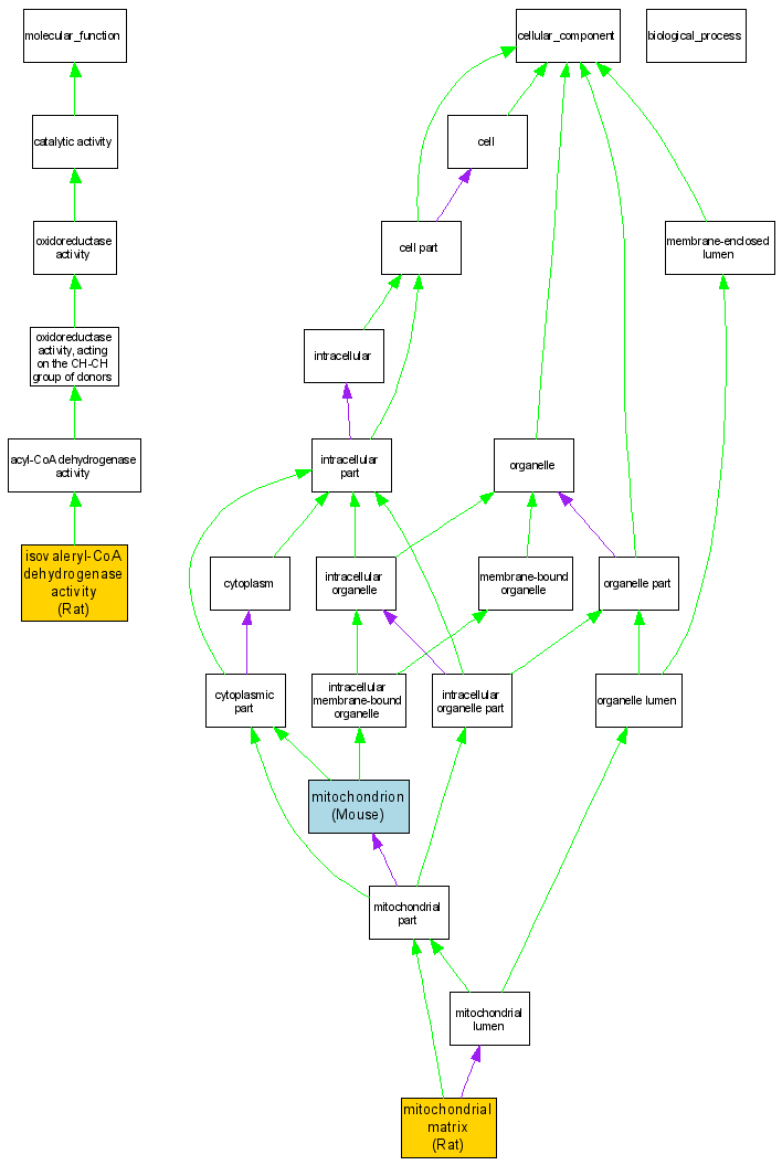 Compare GO annotations related to Isovaleric acidemia using OMIM genes and OrthoDisease orthologs