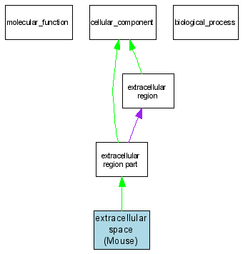 Green arrows indicate "is_a"; Purple arrows indicate "part_of"