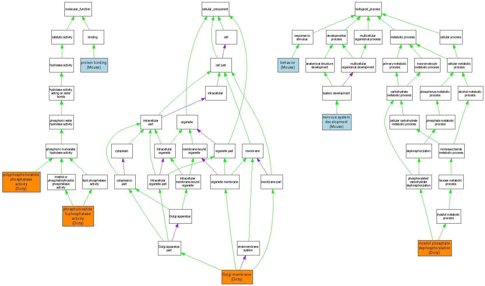 Compare GO annotations related to Epilepsy, progressive myoclonic 2B using OMIM genes and OrthoDisease orthologs