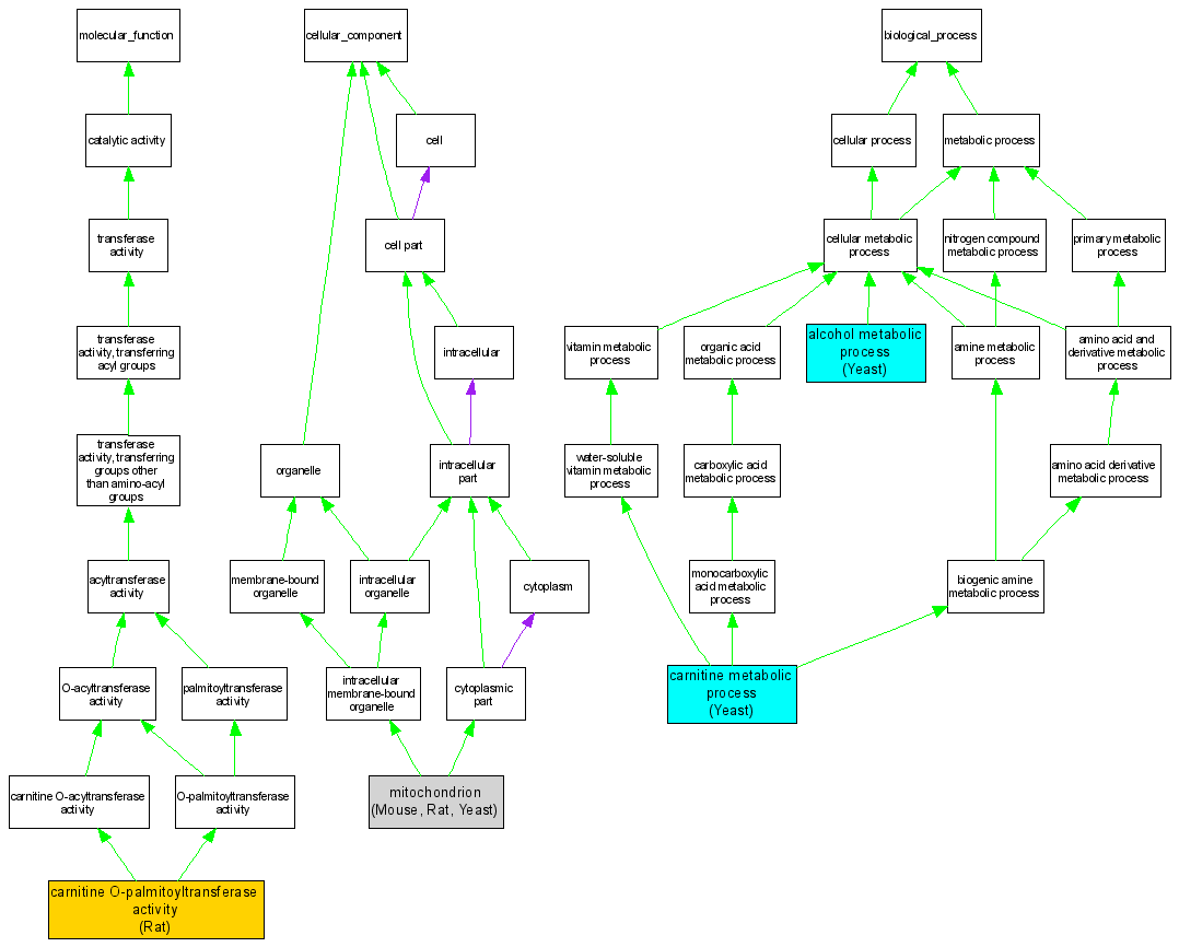 Molecular FunctionGO:0004095carnitine O-palmitoyltransferase activity RGD:2398IMPRatRGD:1298788|PMID:2355018