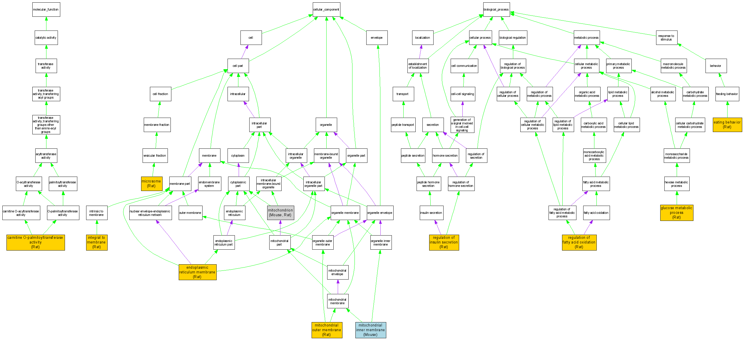 Compare GO annotations related to CPT deficiency, hepatic, type IA using OMIM genes and OrthoDisease orthologs