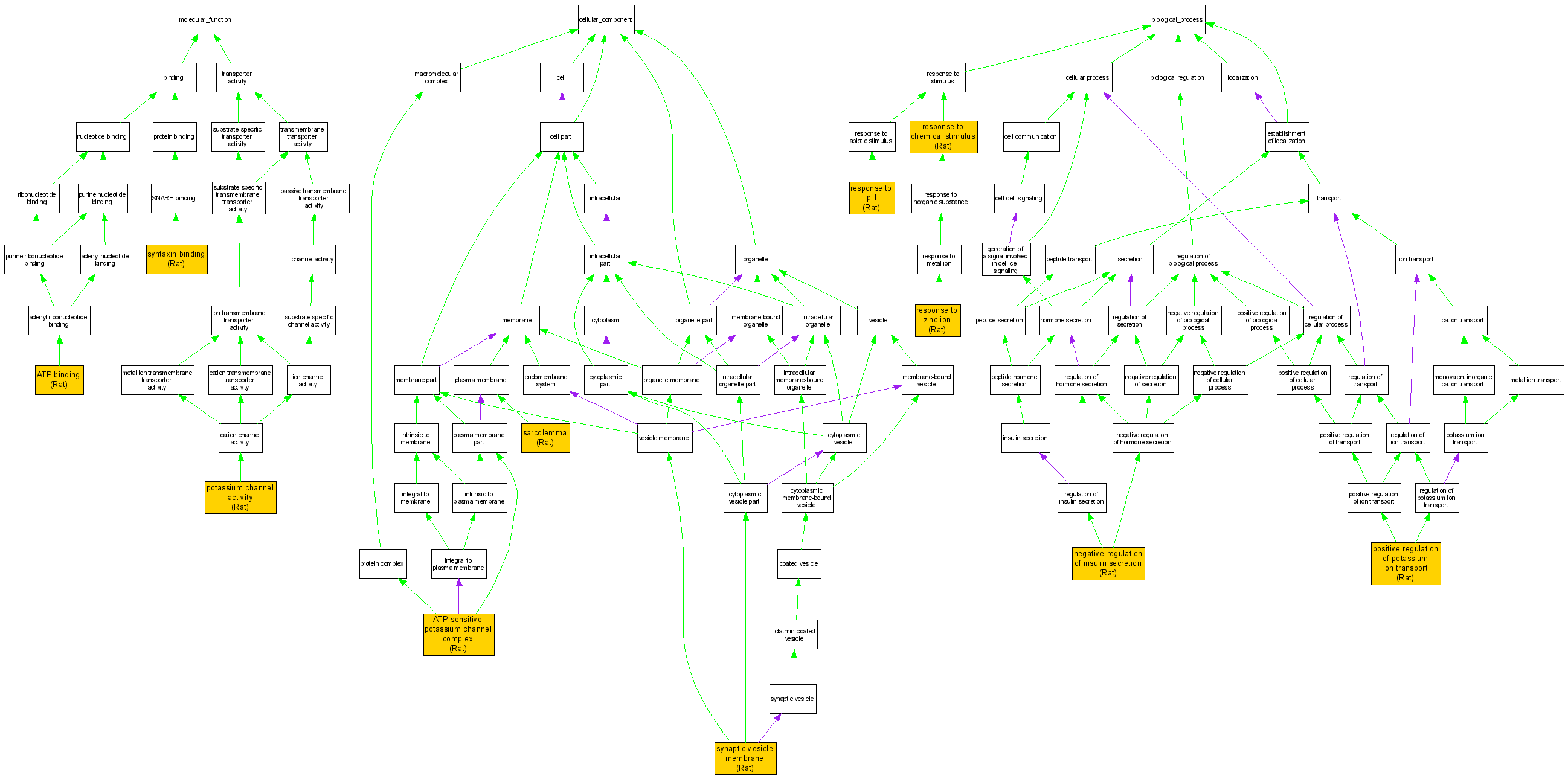 Compare GO annotations related to Hyperinsulinemic hypoglycemia, familial, 1 using OMIM genes and OrthoDisease orthologs