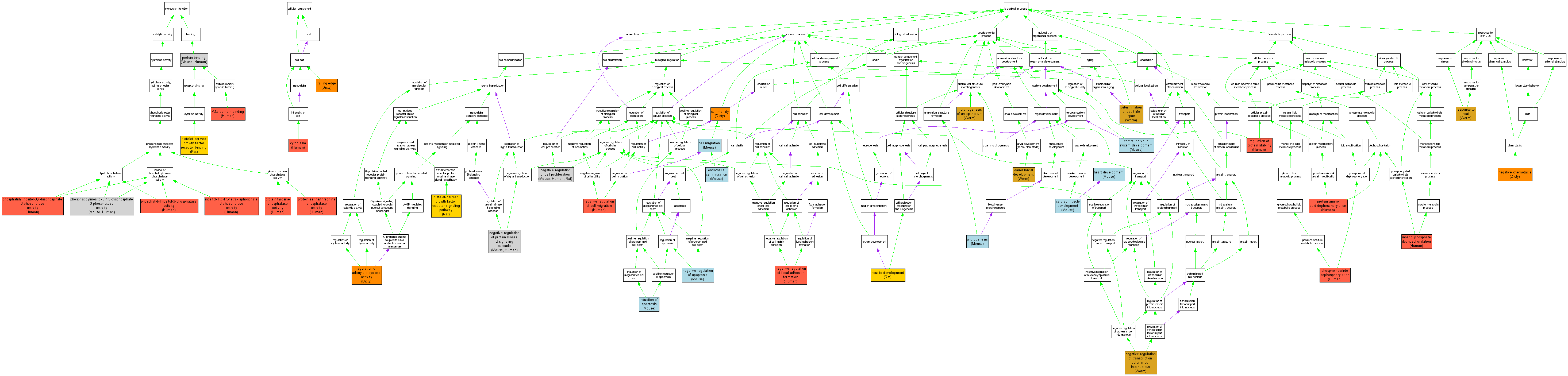 Biological ProcessGO:0030336negative regulation of cell migration P60484IMPHumanPMID:9616126