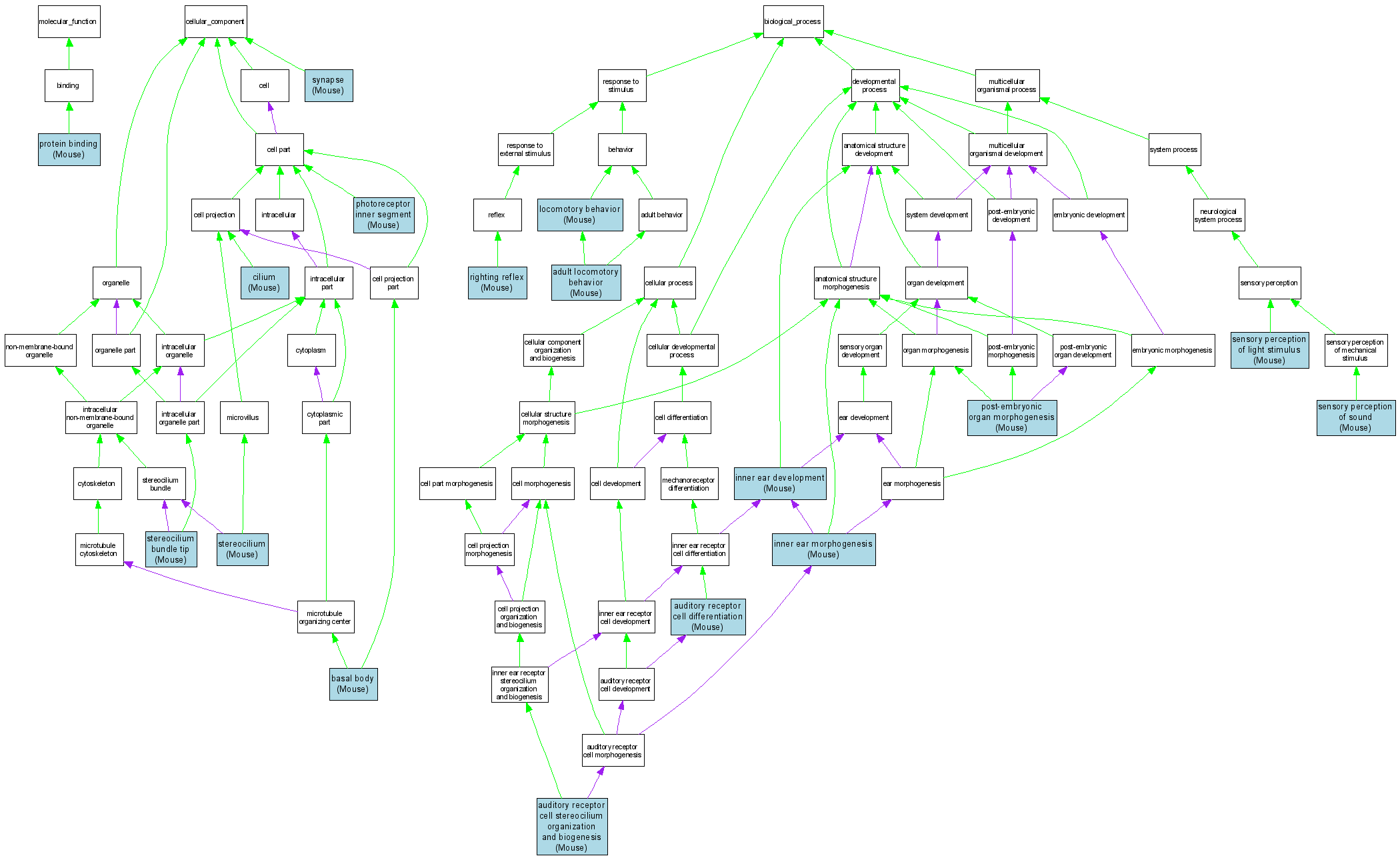 | Biological Process | GO:0060088 | auditory receptor cell stereocilium organization and biogenesis |