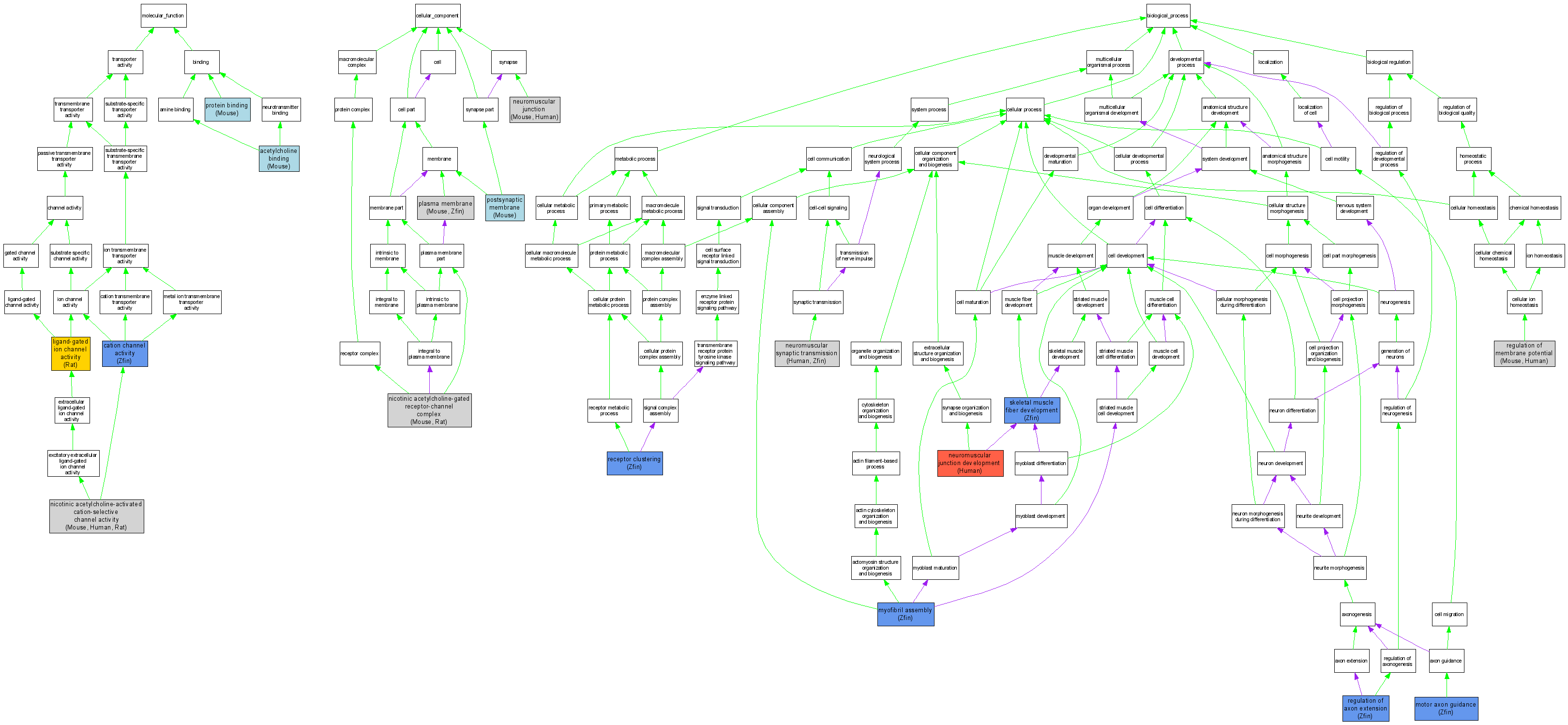 | Molecular Function | GO:0004889 | nicotinic acetylcholine-activated cation-selective channel activity |