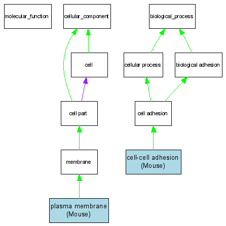 Green arrows indicate "is_a"; Purple arrows indicate "part_of"