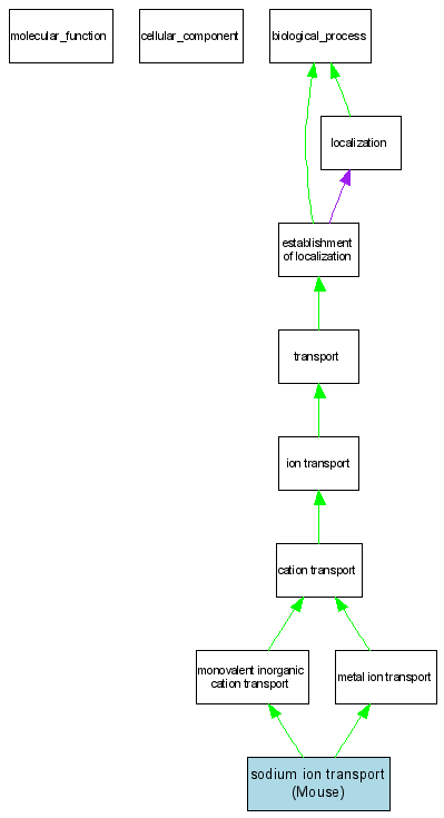 Green arrows indicate "is_a"; Purple arrows indicate "part_of"