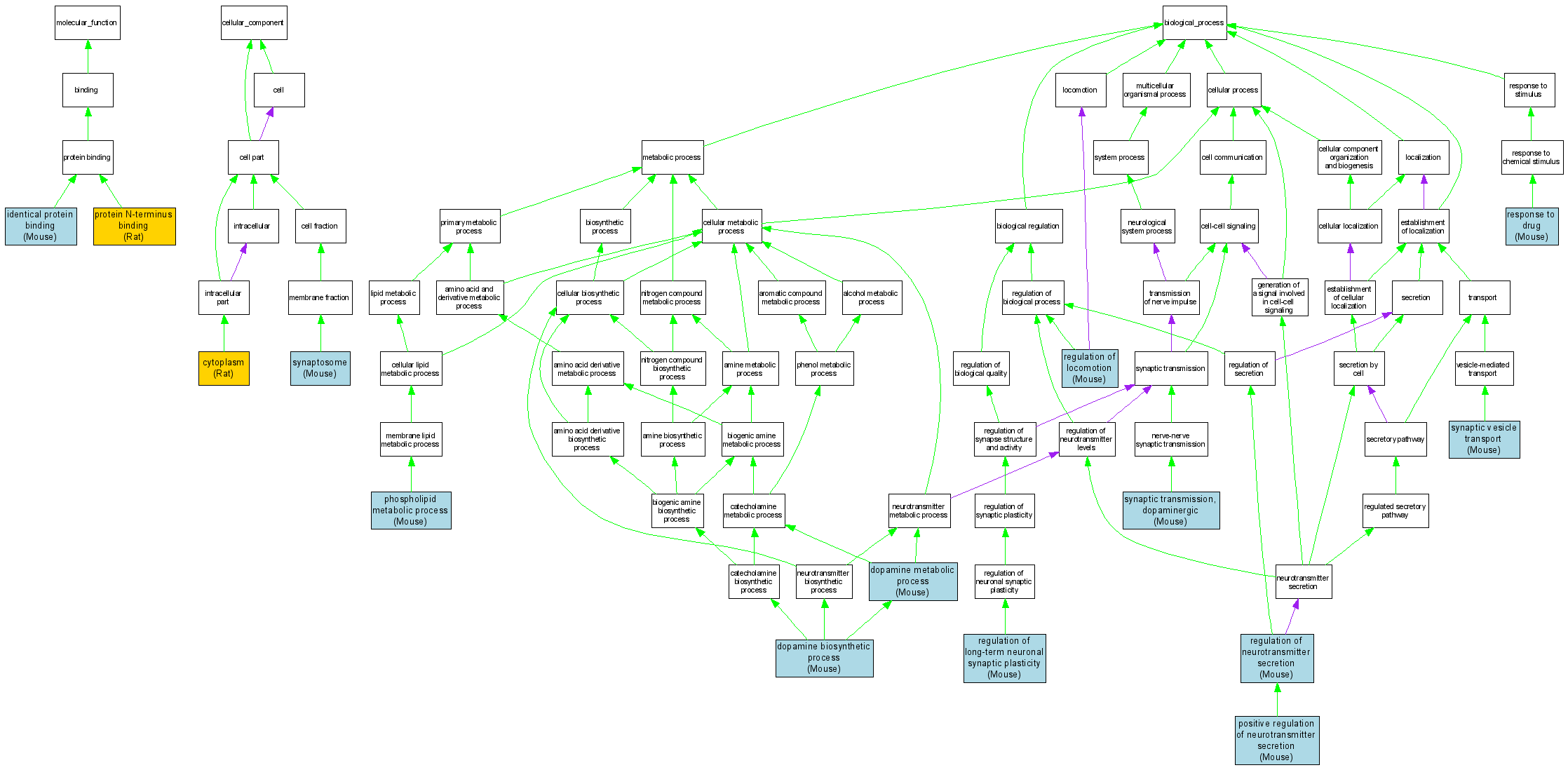 Biological ProcessGO:0042417dopamine metabolic process MGI:1277151IGIMouseMGI:MGI:3057254|PMID:15465911