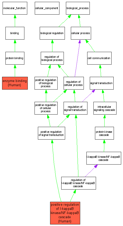 Green arrows indicate "is_a"; Purple arrows indicate "part_of"