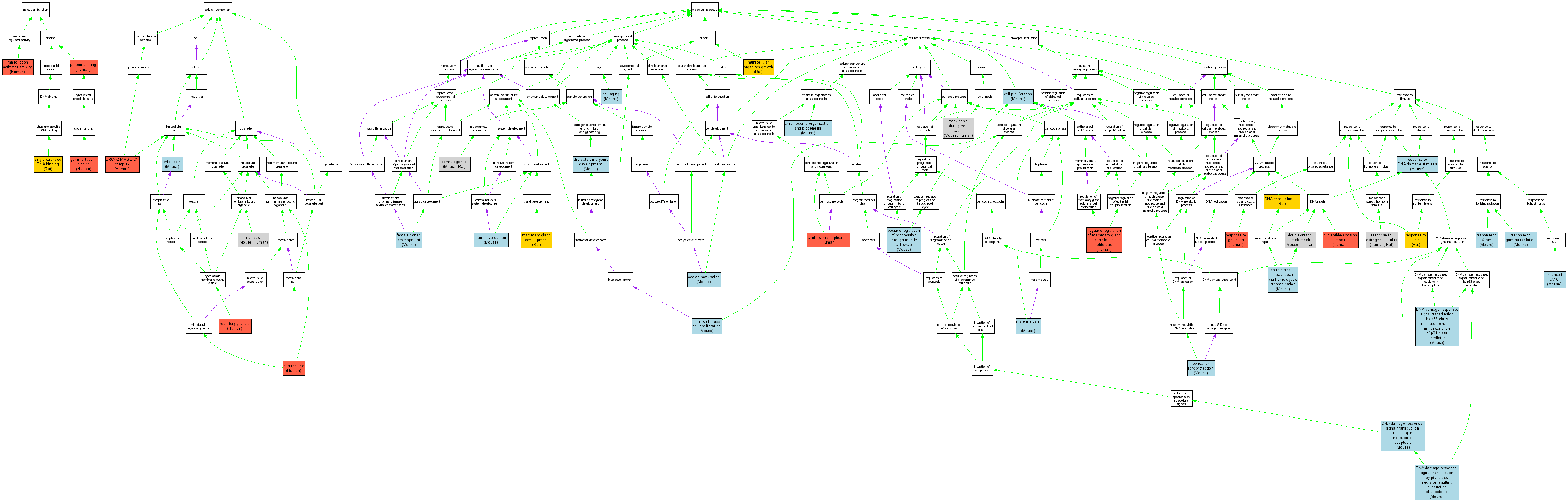 Compare GO annotations for BRCA2 and its orthologs
