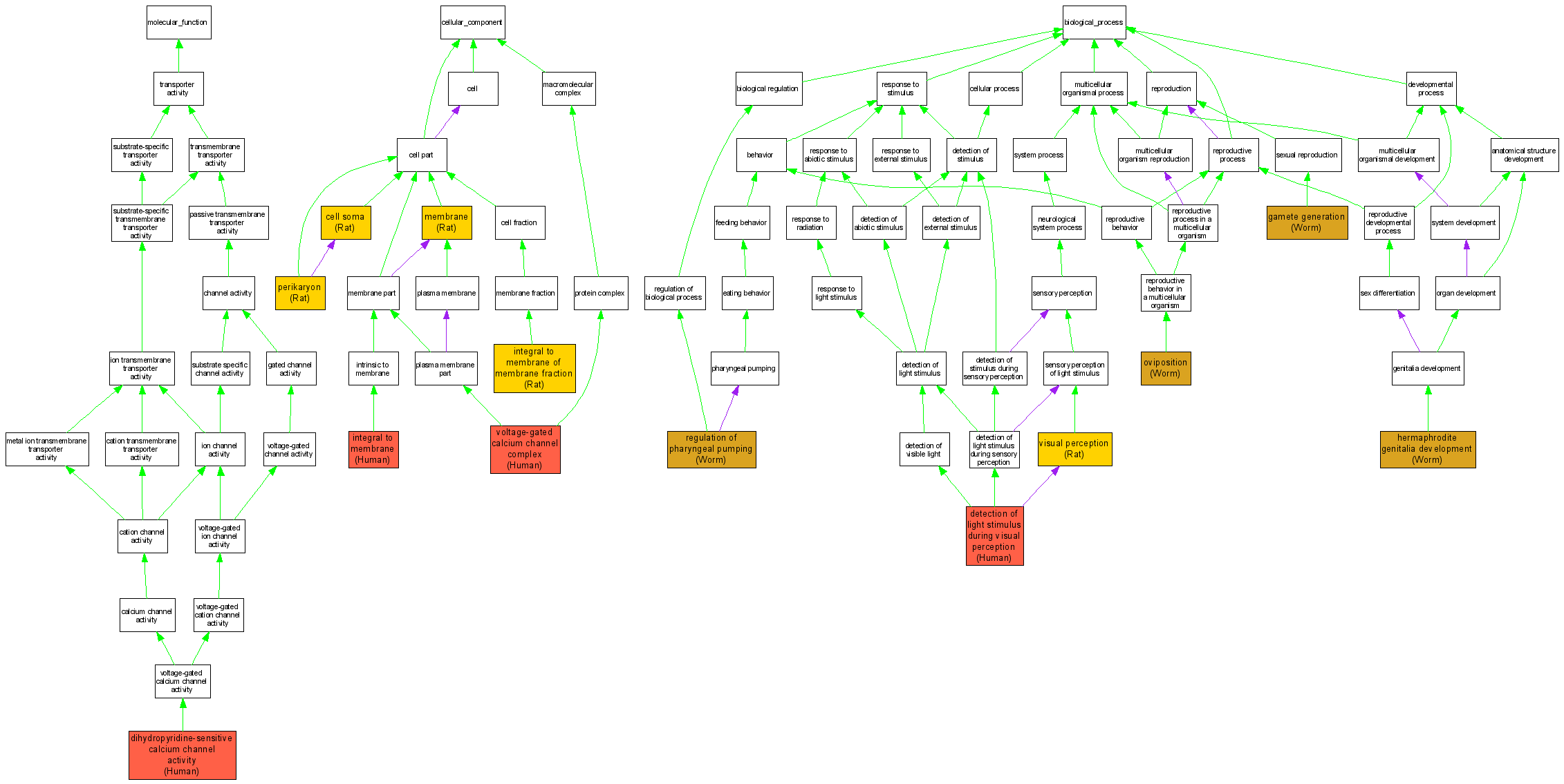 Compare GO annotations for CACNA1F and its orthologs