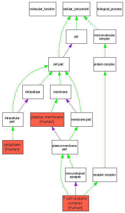 - Green arrows indicate "is_a"; Purple arrows indicate "part_of"