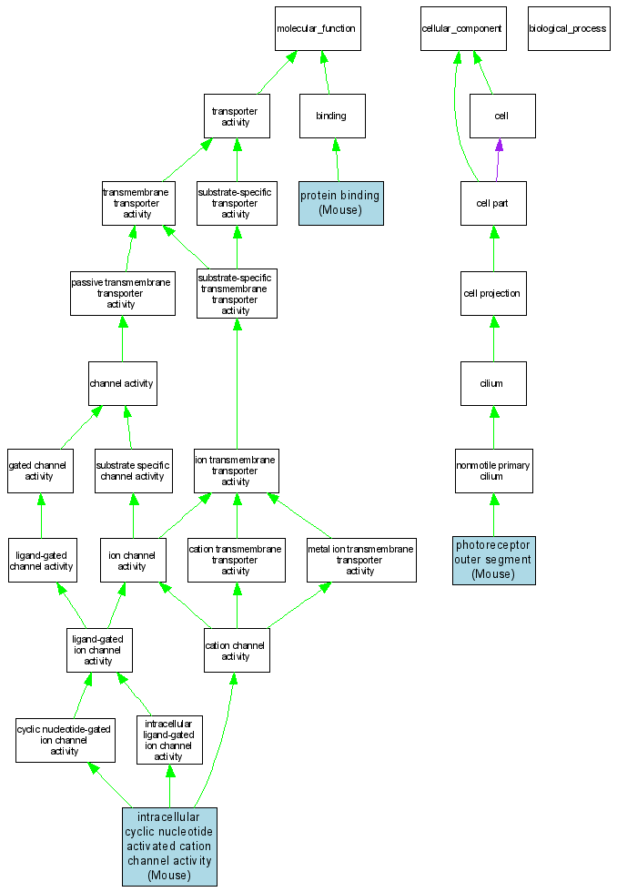 | Molecular Function | GO:0005221 | intracellular cyclic nucleotide activated cation channel activity | MGI:1341818 | IPI | Mouse | MGI:MGI:1353088|PMID:10662822 |