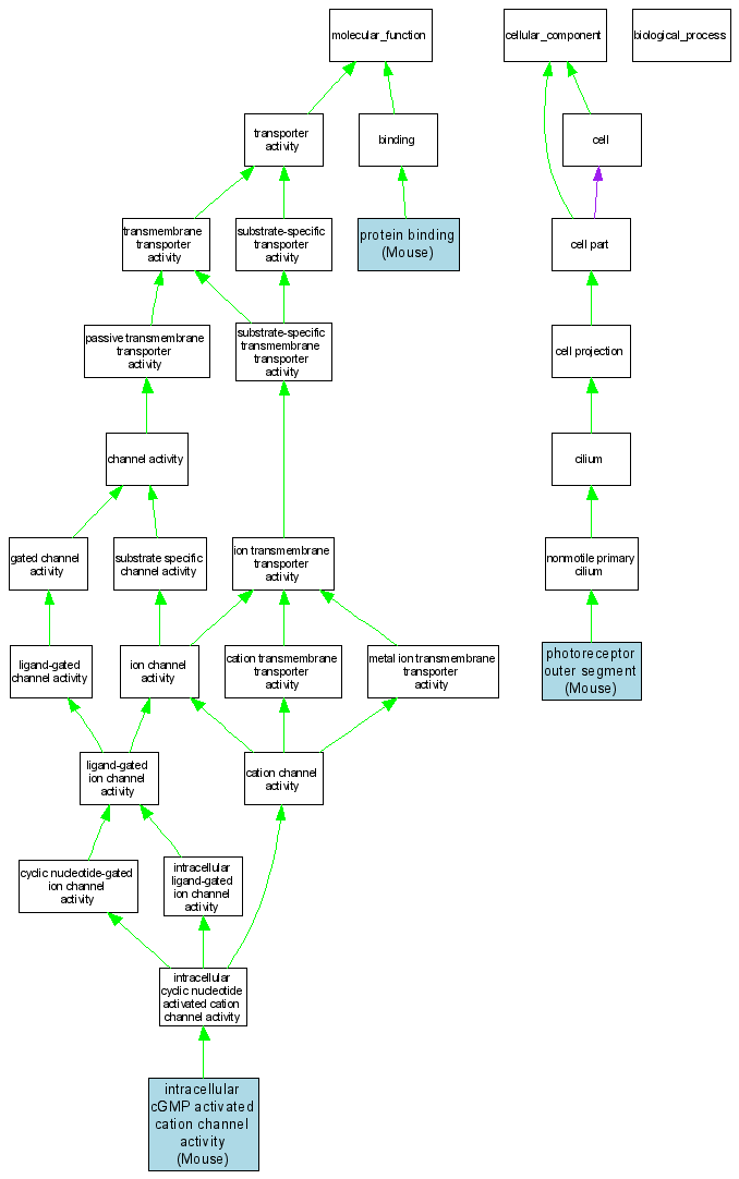 Molecular FunctionGO:0005223intracellular cGMP activated cation channel activity MGI:1353562IPIMouseMGI:MGI:1353088|PMID:10662822