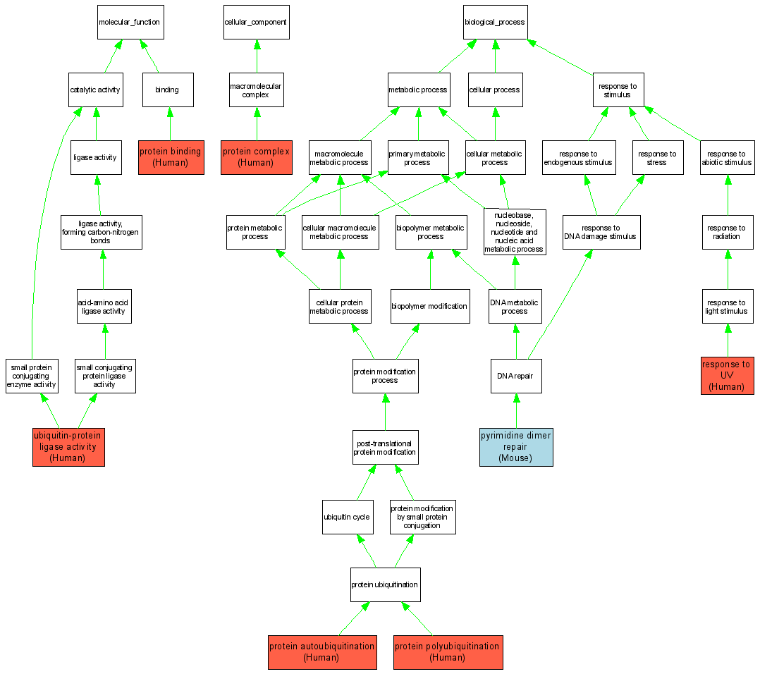 Biological ProcessGO:0006290pyrimidine dimer repair MGI:1355314IMPMouseMGI:MGI:3526648|PMID:15558025