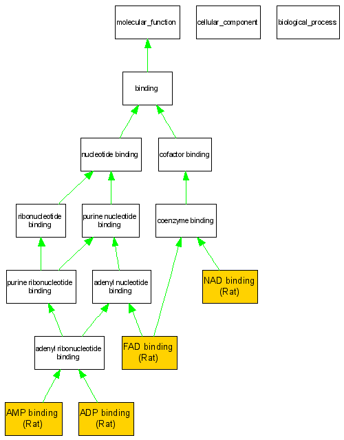 | Molecular Function | GO:0050660 | FAD binding | RGD:2502 | IDA | Rat | RGD:1599772|PMID:14609324 |