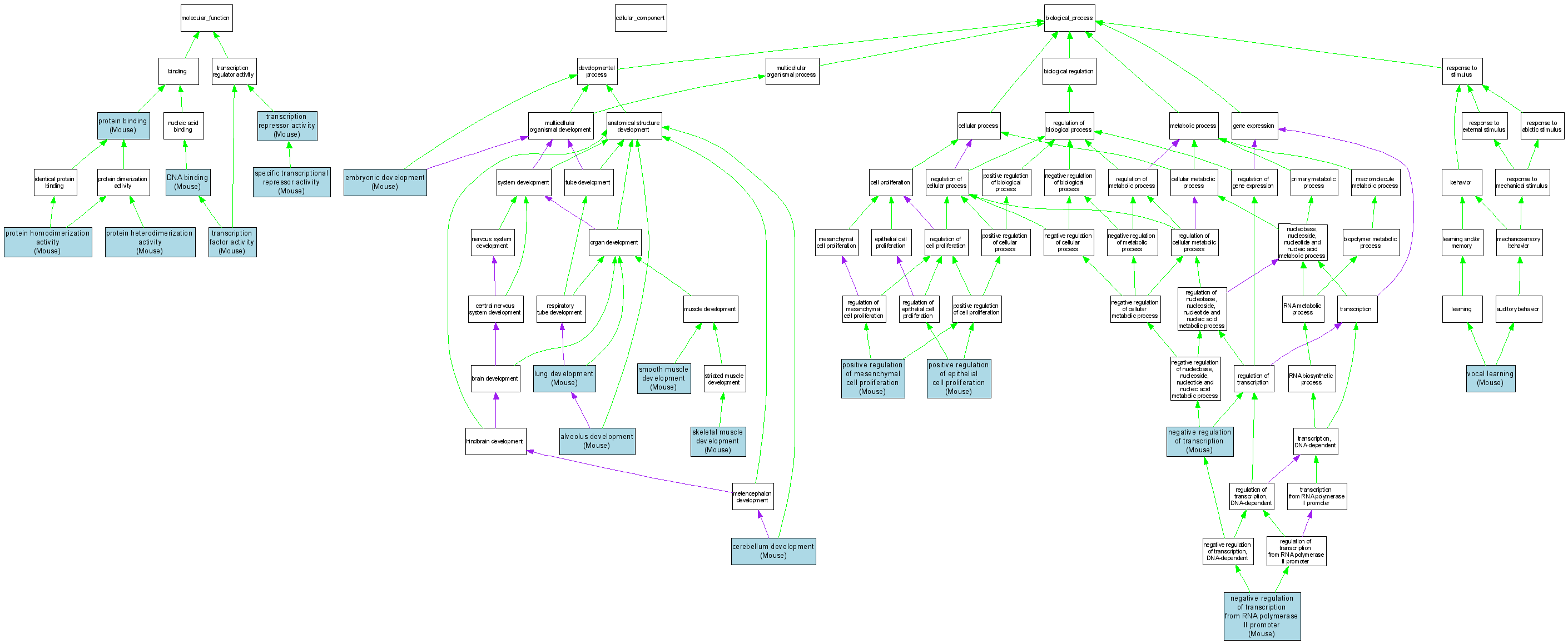 Molecular FunctionGO:0016564transcription repressor activity MGI:2148705IDAMouseMGI:MGI:3606794|PMID:14701752