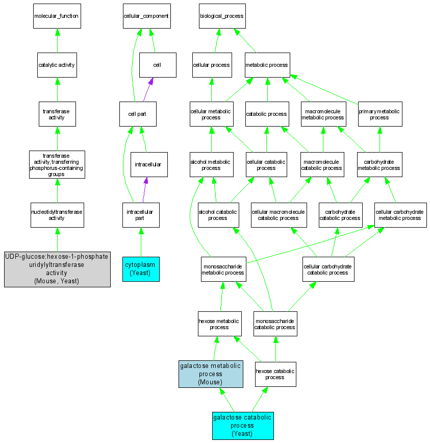 | Molecular Function | GO:0008108 | UDP-glucose:hexose-1-phosphate uridylyltransferase activity |
