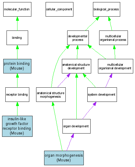 | Molecular Function | GO:0005159 | insulin-like growth factor receptor binding | MGI:96434 | IPI | Mouse | MGI:MGI:2679358|PMID:14566968 |