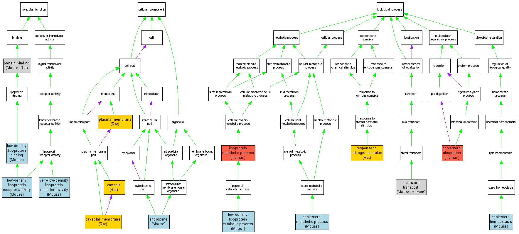 | Biological Process | GO:0030299 | cholesterol absorption |