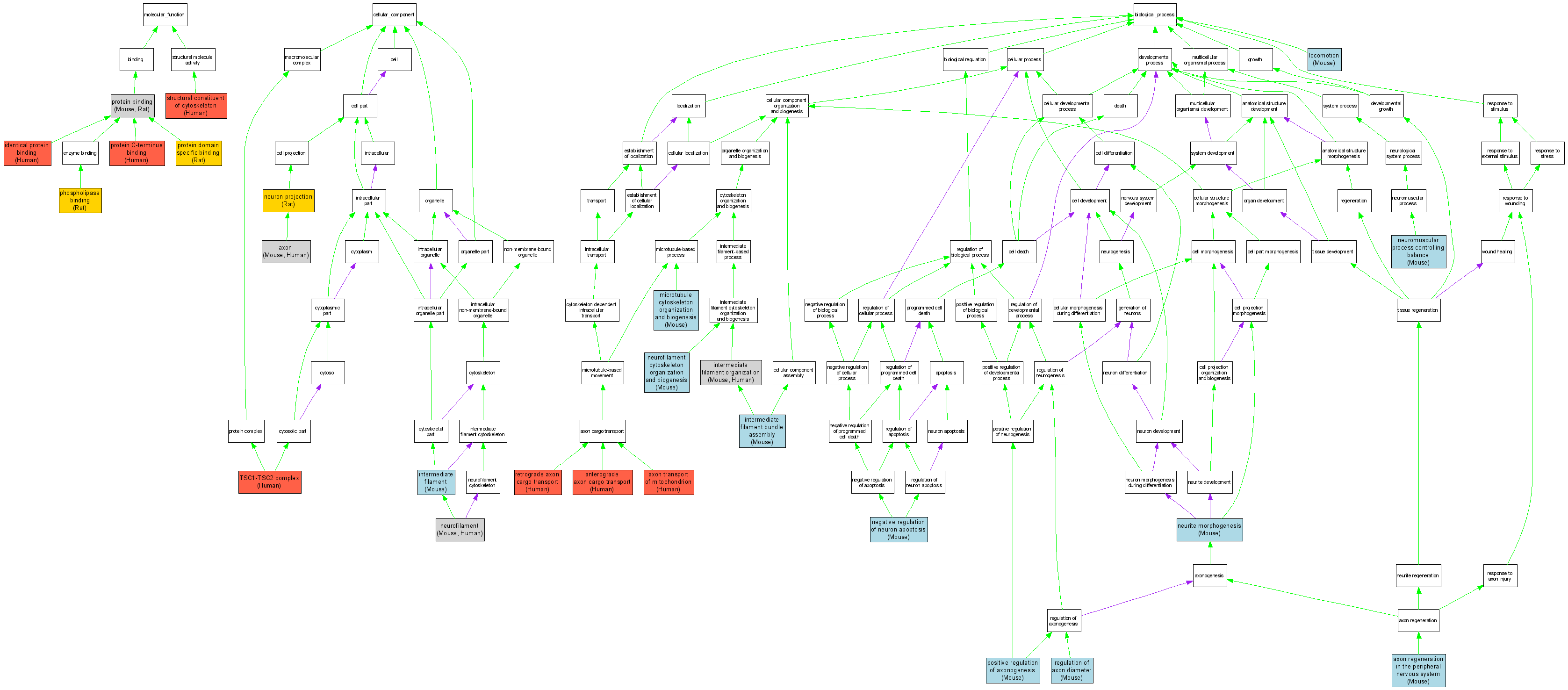 Biological ProcessGO:0060052neurofilament cytoskeleton organization and biogenesis MGI:97313IMPMouseMGI:MGI:3664358|PMID:16920084