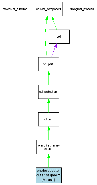 Green arrows indicate "is_a"; Purple arrows indicate "part_of"