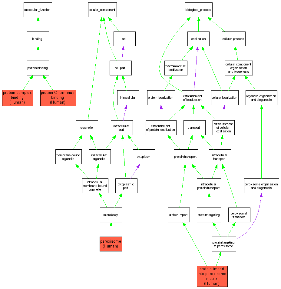 | Biological Process | GO:0016558 | protein import into peroxisome matrix | Q7Z412 | IMP | Human | PMID:15858711 |