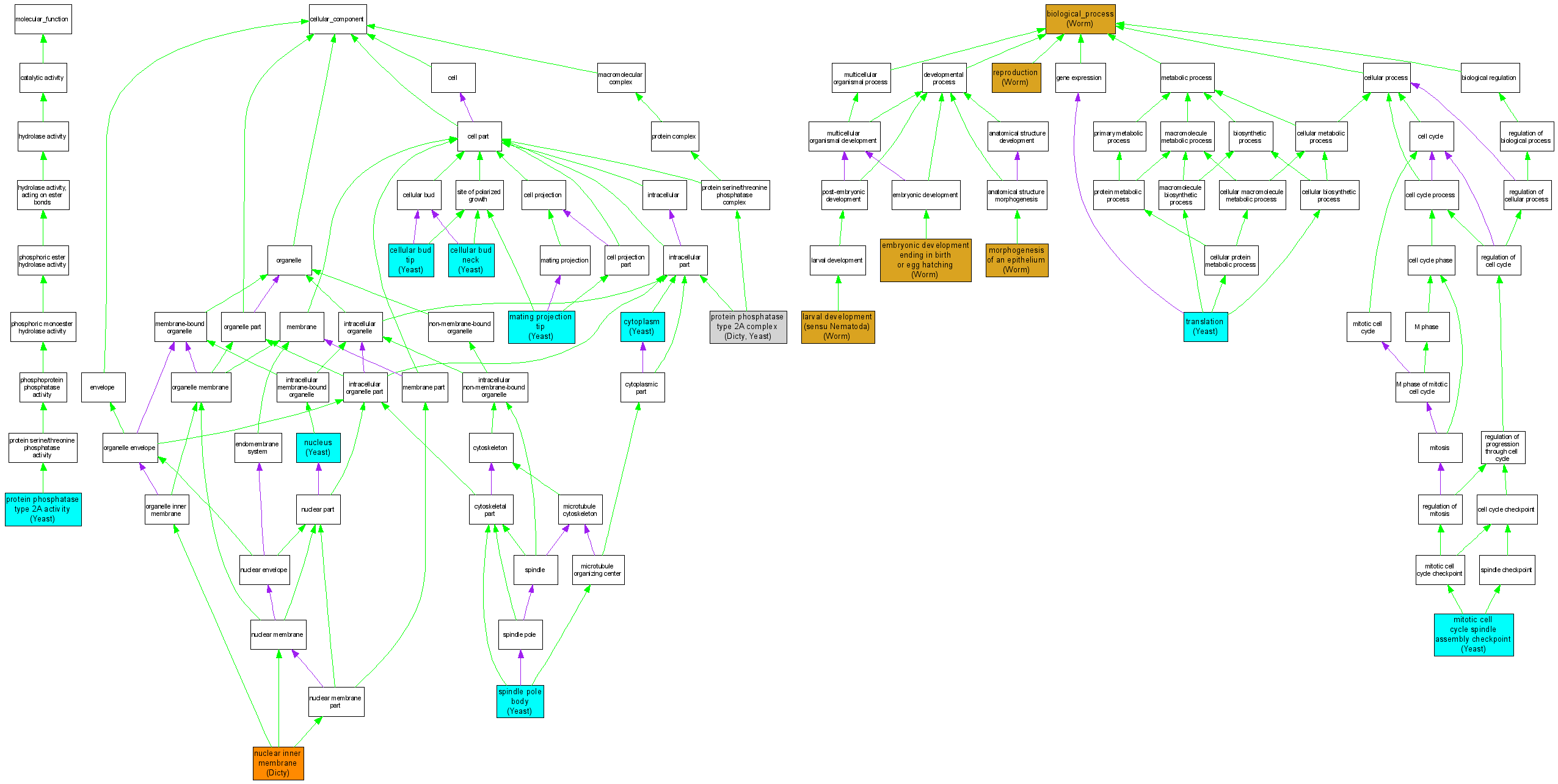| Cellular Component | GO:0000159 | protein phosphatase type 2A complex |