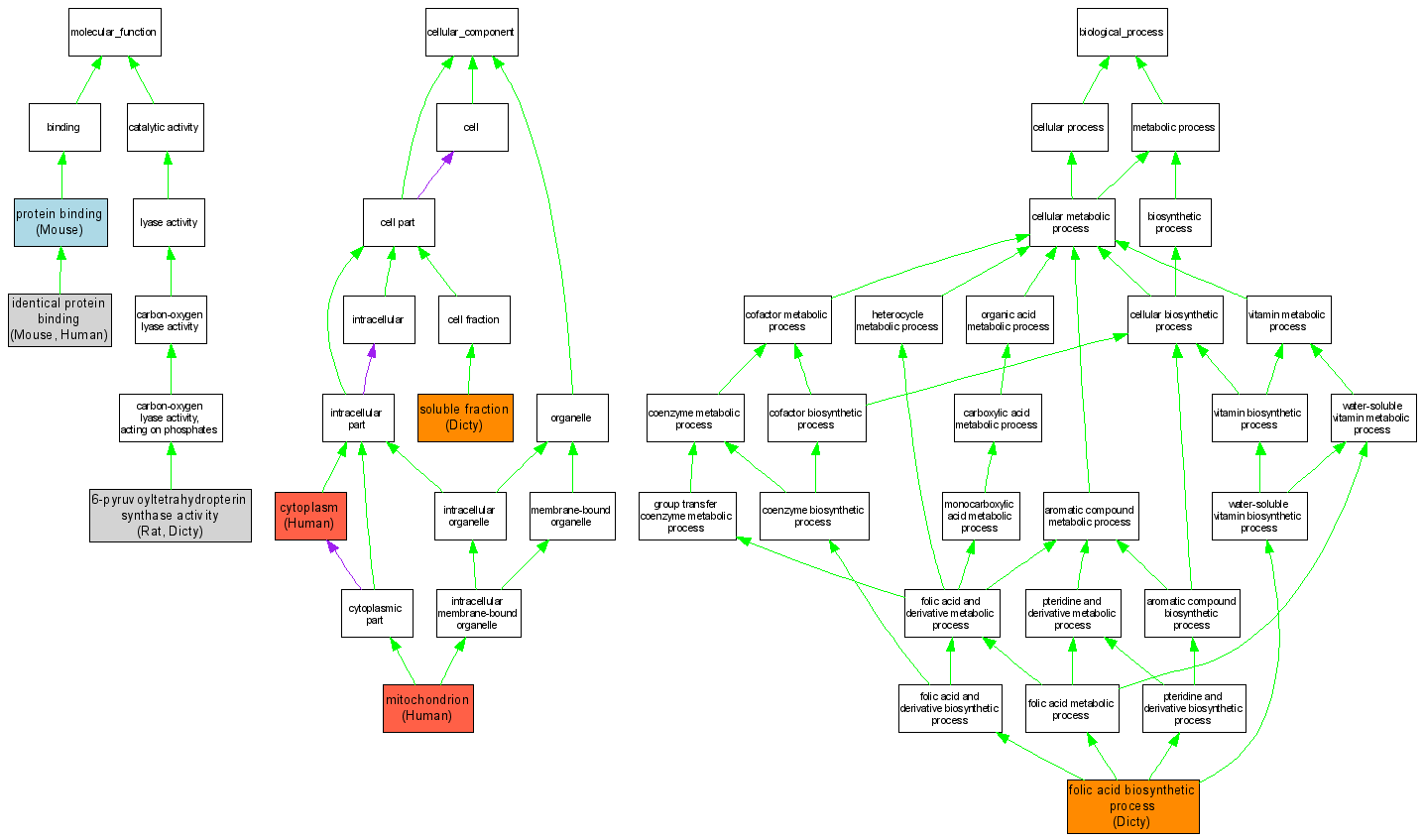 | Molecular Function | GO:0003874 | 6-pyruvoyltetrahydropterin synthase activity |