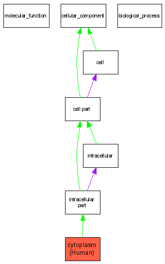 - Green arrows indicate "is_a"; Purple arrows indicate "part_of"