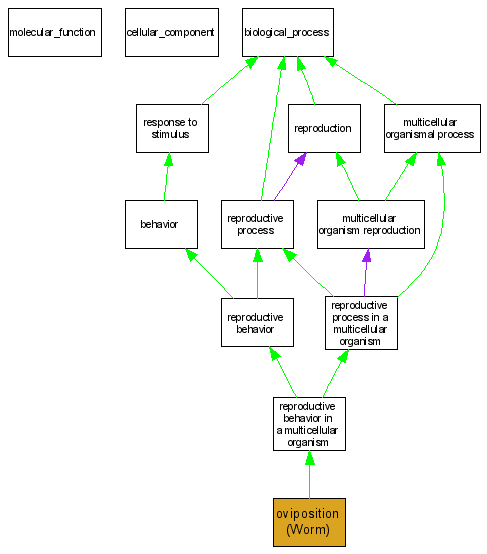 Green arrows indicate "is_a"; Purple arrows indicate "part_of"