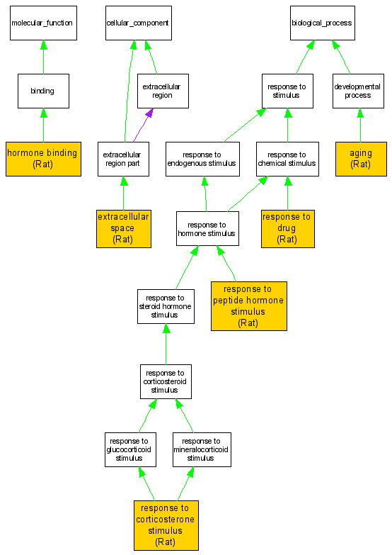 | Biological Process | GO:0051412 | response to corticosterone stimulus | RGD:619833 | IEP | Rat | RGD:1600134|PMID:8365361 |