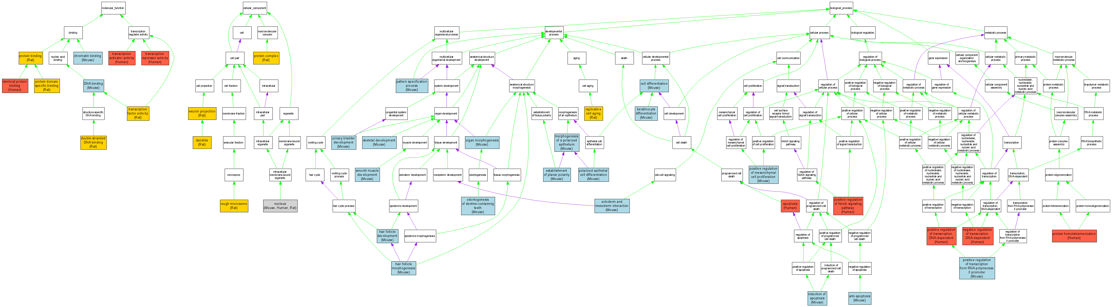 Biological ProcessGO:0001942hair follicle development MGI:1330810IMPMouseMGI:MGI:3612725|PMID:16410075