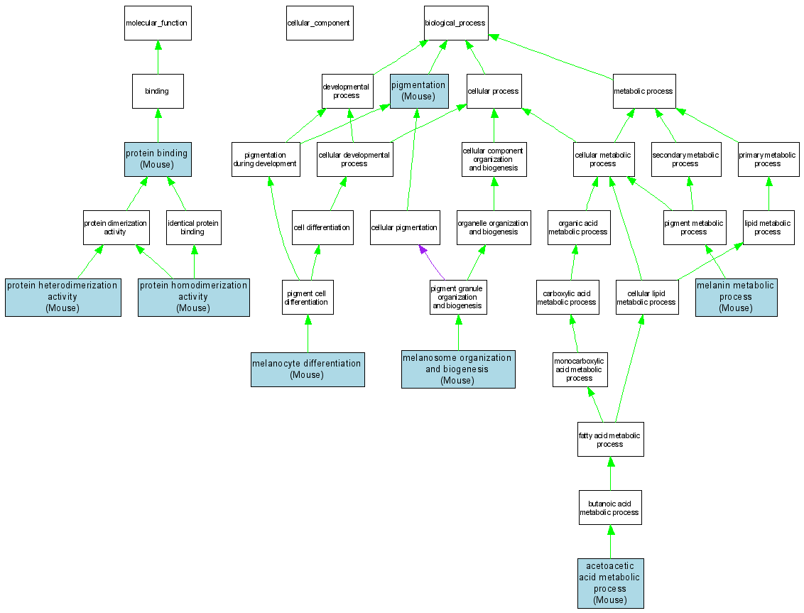 Biological ProcessGO:0006582melanin metabolic process MGI:98881IMPMouseMGI:MGI:1202196|PMID:9548375