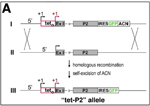 Mutation details: A tetracycline response element was inserted upstream of the translation initiation site. An IRES-GFP was inserted downstream of the coding sequence. The final allele lacks the self-exising neomycin resistance cassette inserted downstream of GFP.