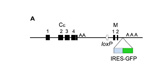 Mutation details: An IRES-GFP was inserted between the membrane (M) coding exons and polyadenylation sequence in the 3'UTR. Cre-mediated recombination removed the floxed neomycin resistance cassette inserted upstream of the first M encoding exon.